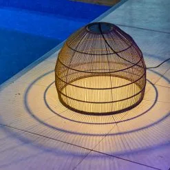LUMISKY Suspension Nomade Poly Rotin Avec Corde LED Blanc Chaud/blanc Dimmable HANG BOHEME H35cm