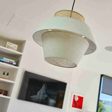 LIVRAISON : Abat-jour en cannage carré, coton et jute collés sur des supports PVC, maintenus par des cercles de fixations en acier. Cerclage métallique pour monture électrique E27. Monture électrique non-fournie. Pour commander la monture électrique correspondante, tapez en barre de recherche la référence BATTISTA (existe en noir ou doré).