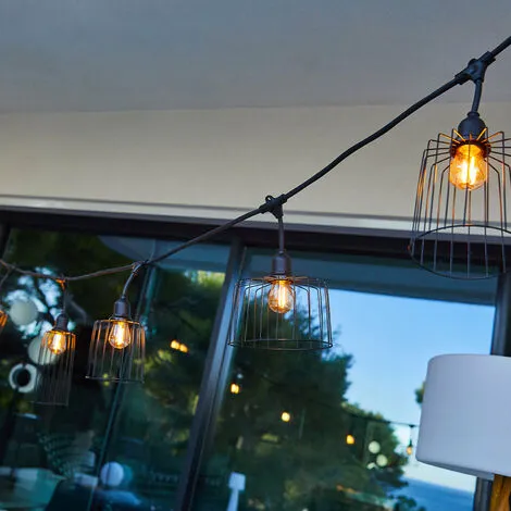 - GUIRLANDE LUMINEUSE E27 : Nema Light est une guirlande lumineuse à ampoules E27 à filament qui disposent de petits passants pour pouvoir la suspendre à votre gré. Cette guirlande lumineuse LED avec abat-jour effet cage en acier se distingue par son design à la fois rétro et tendance. Elle est idéale pour faire briller vos soirées et vous allez adorer son côté design et vintage pour illuminer vos plus beaux événements.