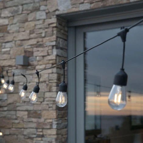 - ROBUSTE : ainsi, la guirlande solaire LED Mafy Solar design d’une longueur totale de 6,50m composée de 10 ampoules transparentes est protégée contre les éclaboussures (IP 44) et résiste aussi aux UV. Il y a 40cm entre chaque ampoule.