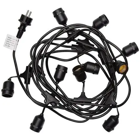 GUIRLANDE LUMINEUSE E27 : Mafy est une guirlande lumineuse dotée de 10 douilles E27 qui disposent de crochets pour pouvoir les suspendre à votre gré. Fournie avec ampoule à filament LED (3000K°), cette guirlande lumineuse se distingue par son design à la fois rétro et tendance. Elle est idéale pour faire briller vos soirées et vous allez adorer son côté design et élégant pour illuminer vos plus beaux événements.