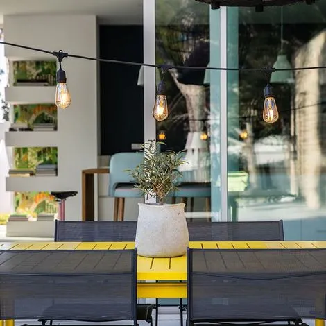 PRATIQUE : cette guirlande lumineuse peut s’utiliser aussi bien à l’intérieur qu’à l’extérieur. Elle apportera, à votre terrasse ou votre jardin, une atmosphère festive dans un esprit guinguette chic. Dans une chambre ou dans un salon, elle amènera de l’élégance. Mafy s’adapte à toutes les situations.