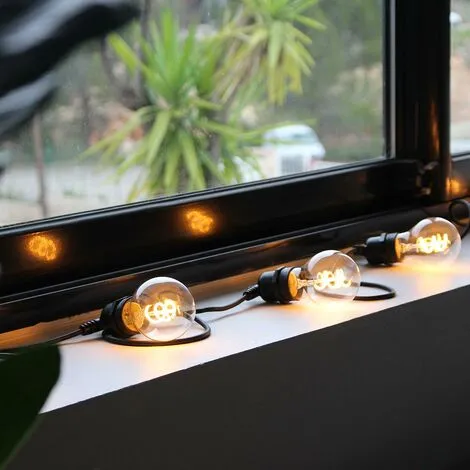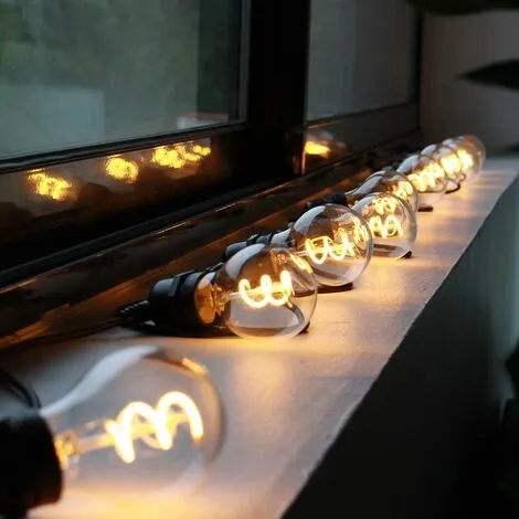 - GUIRLANDE LUMINEUSE LED : Peggy est une guirlande lumineuse LED blanc chaud. Cette guirlande se distingue par son design très tendance avec ses filaments spirales dans chaque ampoule. Les ampoules sont fixées sur la guirlande mais des petits crochets au-dessus permettent de les suspendre. Elle est idéale comme guirlande design, guirlande décorative intérieur et extérieur ou encore pour illuminer vos soirées. Rien de mieux que cette guirlande lumineuse pour accompagner vos meilleures soirées conviviales.