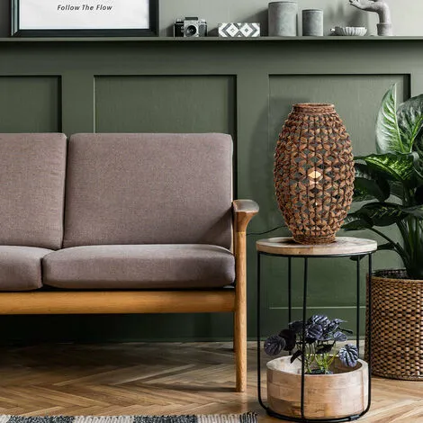 LAMPE DE TABLE EN JACINTHE AQUATIQUE : Utilisez la lampe de table ROSA pour apporter de la lumière à votre intérieur. Avec sa forme ronde et douce, son câble électrique d’une longueur de 2 mètres et sa douille pour ampoule E27, créez une ambiance qui vous ressemble. LIVRAISON : Lampe de table ROSA en jacinthe aquatique et métal, un cordon électrique avec culot E27. Attention, ampoule non incluse. Classe électrique II. Dimensions : 29 x 29 x 51 cmQUALITÉ : La lampe de table ROSA est un produit de qualité qui répond à toutes les normes Européennes actuellement en vigueurMONTAGE FACILE : Vissez votre ampoule E27 dans la douille (ampoule non fournie). Branchez la fiche électrique du luminaire dans la prise électrique de la pièce de votre choix. Allumez votre lampe de table ROSA grâce à son interrupteur situé le long du câble électrique.DESIGN : Une fois installée et éclairée, les motifs que forme le tressage de la lampe de table ROSA en jacinthe aquatique viendront créer de jolies ombres portées dans votre intérieur.