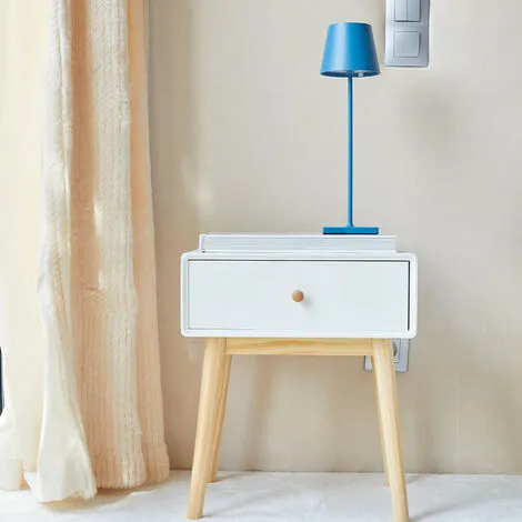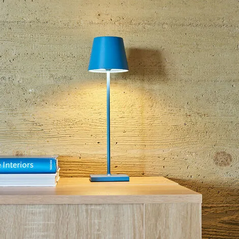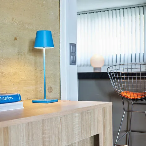 LAMPE DE TABLE LED : Kelly Blue est une lampe de table LED sans fil avec une base LED blanc chaud à intensité variable. Cette lampe à poser se distingue par son design sobre et élégant mais également par sa grande autonomie de fonctionnement (jusqu’à 9 heures). Lampe à poser autonome, elle apportera à votre décoration une touche chic et tendance. Elle est idéale comme lampe de table design, lampe de chevet ou encore pour illuminer vos tables de fêtes.UTILISATION EXTERIEUR / INTERIEUR : après une charge rapide de votre lampe de table Kelly Blue, vous pourrez utiliser cette lampe design à l’extérieur comme dans la maison. Que ce soit comme lampe d’extérieur pour la terrasse, comme lampe de table pour le salon, comme lampe déco ou comme lampe de chevet dans une chambre d’enfant, la lampe Kelly Blue s’adapte à toutes les situations.AUTONOMIE : la lampe de table Kelly Blue, une fois chargée à son maximum, peut éclairer tout autour de vous pendant près de 9 heures. Le temps de charge complet de la lampe est de 5-7h avec le câble USB fourni.VARIATEUR D’INTENSITE : la lampe de table Kelly Blue possède une luminosité blanc chaud à intensité variable, vous permettant d’adapter le degré de luminosité indépendamment sur toutes vos lampes Kelly. Cette lampe éclaire vraiment avec son flux lumineux de plus de 100 Lumens.PRATIQUE ET ROBUSTE : la lampe de table Kelly Blue est essentiellement composée d’aluminium. Chic et élégante, la lampe LED design, proposée en 6 couleurs : blanc, noir, gris, olive, bleu et marron fait une hauteur totale de 38cm (largeur 10cm). Elle est également protégée contre les éclaboussures (IP54) et résiste aussi aux UV.