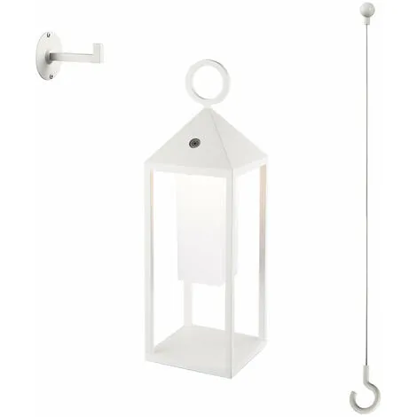LANTERNE LED : SANTORIN WHITE est une lanterne en mĂ©tal blanc sans fil LED blanc chaud. Elle est fournie avec deux accessoires pour la suspendre ou l’accrocher au mur. Un crochet mural Ă visser vous permettra d’utiliser la lampe SANTORIN WHITE comme applique. Un câble mĂ©tal inox vous permettra de suspendre notre lanterne depuis le plafond. Lampe autonome, Ă poser ou Ă suspendre, elle apportera Ă votre dĂ©coration une touche chic et tendance. Elle est idĂ©ale comme lampe de terrasse ou encore pour illuminer vos allĂ©es ou les alentours d’une piscine. Ă€ vous de choisir !UTILISATION EXTÉRIEUR / INTÉRIEUR : après une charge rapide de votre lampe SANTORIN WHITE, vous pourrez utiliser cette lampe design partout, Ă l’extĂ©rieur comme dans la maison. Que ce soit comme lampe d’extĂ©rieur pour le jardin, comme lampe de salon ou comme lampe dĂ©co, la lampe design SANTORIN WHITE s’adapte Ă toutes les situations.AUTONOMIE : la lampe SANTORIN WHITE, une fois chargĂ©e Ă son maximum, peut Ă©clairer tout autour de vous pendant près de 9 heures. Le temps de chargement complet de la lampe est de 6 heures avec le câble USB fourni.INTENSITÉ : la lanterne SANTORIN WHITE possède une luminositĂ© blanc chaud qui apporte une atmosphère conviviale Ă votre espace. Cette lampe Ă©claire vraiment avec son flux lumineux de 155 Lumens.PRATIQUE, ROBUSTE & CHIC : la lampe SANTORIN WHITE est en aluminium, avec une hauteur de 47cm (poignĂ©e comprise) et d’une largeur de 14cm x 14cm. Elle est protĂ©gĂ©e contre les Ă©claboussures (IP54) et rĂ©siste aussi aux UV. La lanterne SANTORIN WHITE se nettoie facilement avec de l’eau tiède et du savon doux.