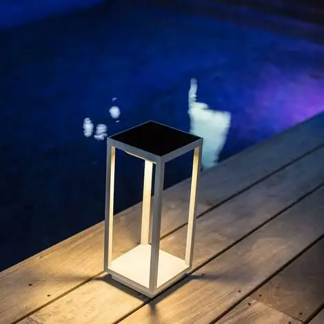 LANTERNE SOLAIRE LED : Hydra est une lanterne sans fil LED blanc chaud. Cette lanterne solaire se distingue par son design chic et moderne, mais également par son autonomie de fonctionnement (jusqu’à 12 heures). Lanterne solaire et autonome, Hydra apportera à votre décoration une touche tendance et originale. Elle est idéale comme lampe de table design, comme point lumineux pour une terrasse ou encore pour éclairer toutes vos réceptions. À vous de choisir !UTILISATION EXTÉRIEUR / INTÉRIEUR : après une charge solaire rapide de votre lampe Hydra, vous pourrez utiliser cette lampe design de partout, à l’extérieur comme dans la maison. Que ce soit comme lampe d’extérieur pour le jardin, comme lampe de table pour le salon, ou simplement comme lampe déco, la lanterne solaire Hydra s’adapte à toutes les situations. Elle fonctionne avec un interrupteur et peut se fixer au sol, se planter ou simplement se poser.AUTONOMIE : la lampe Hydra, une fois chargée à son maximum, peut éclairer tout autour de vous pendant près de 12 heures. Le temps de charge complet de la lanterne est de 6-8 heures.INTENSITÉ : la lanterne Hydra possède une luminosité blanc chaud qui apportera à votre espace une atmosphère douce et chaleureuse. Cette lampe solaire éclaire très bien avec son flux lumineux de plus de 100 Lumens.PRATIQUE, ROBUSTE & TENDANCE : la lanterne solaire LED design d’une hauteur de 34cm (largeur 14cm), est protégée contre les éclaboussures (IP44) et résiste aussi aux UV. La lanterne Hydra se nettoie facilement avec de l’eau tiède et du savon doux.