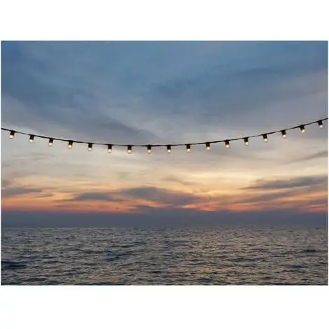 GUIRLANDE LUMINEUSE E27 : Link Me Light est une guirlande lumineuse dotée de 10 ampoules LED culot E27 afilament raccordable jusqu’a10 guirlandes. Cette guirlande lumineuse LED se distingue par son design ala fois rétro et tendance. Elle est idéale pour faire briller vos soirées et vous allez adorer son côté design et élégant pour illuminer vos plus beaux événements.