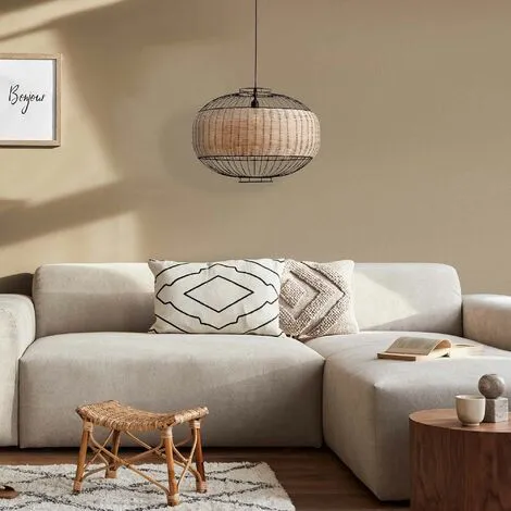 SUSPENSION EN MÉTAL FILAIRE ET ROTIN : Grâce à sa dimension de 55,5 x 55,5 x 40 cm vous pourrez utiliser la suspension électrique VALENTINA BLACK pour apporter de la lumière à votre intérieur et créer une belle ambiance pour vos soirées conviviales. Avec sa structure en métal et rotin naturel tressé, son câble réglable d’une longueur d’1 mètre et sa douille pour ampoule E27, créez une ambiance qui vous ressemble.